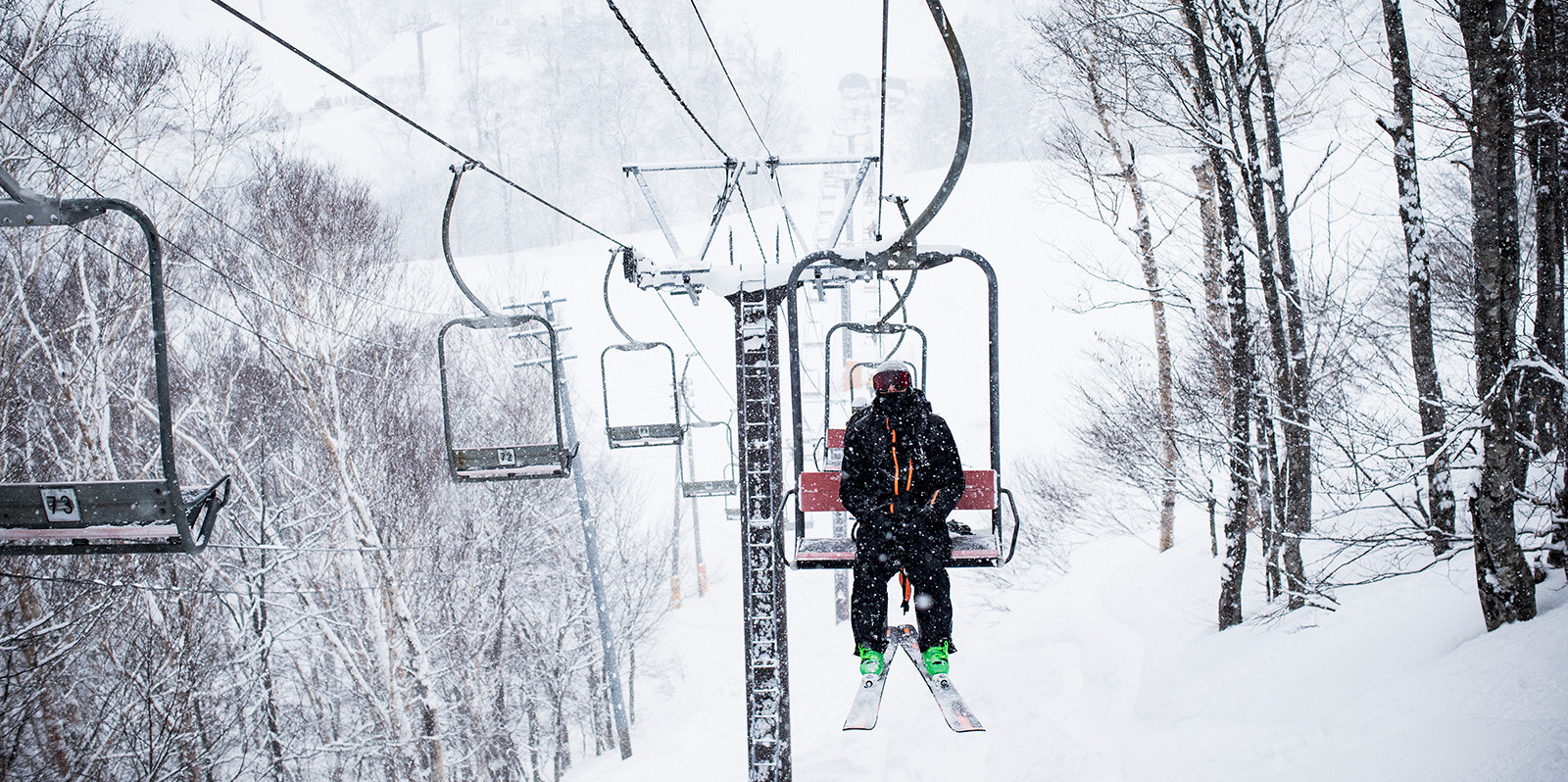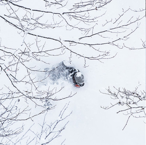 Carrying on regardless of the injury without all the drugs which pollute the body and mind was one more challenge. Then, like a rebirth, the sap started to rise in his thighs to rekindle his desire to ride and to jump. However, hard snow was not an option so the conditions in Japan were to enable him to ski again without concern. He had to find powder snow to be able to land without causing himself further suffering straightaway. In his luggage were mountains of doubt and a pair of lightweight boots made for his convalescent feet, prepared with him and for him.