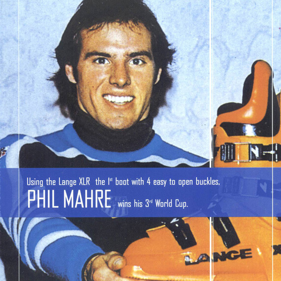 Phil Mahre (USA) wins his third consecutive overall World Cup title (1981, 1982, 1983) in the LANGE XLR