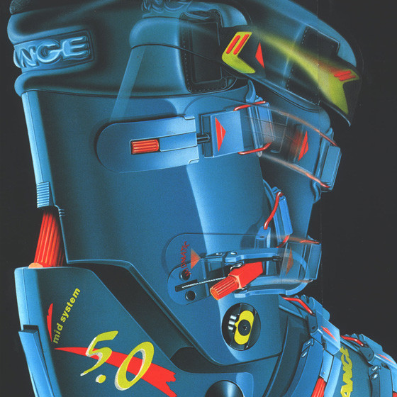 Iconic images of women posing in Lange ski boots becomes a trademark of the brand